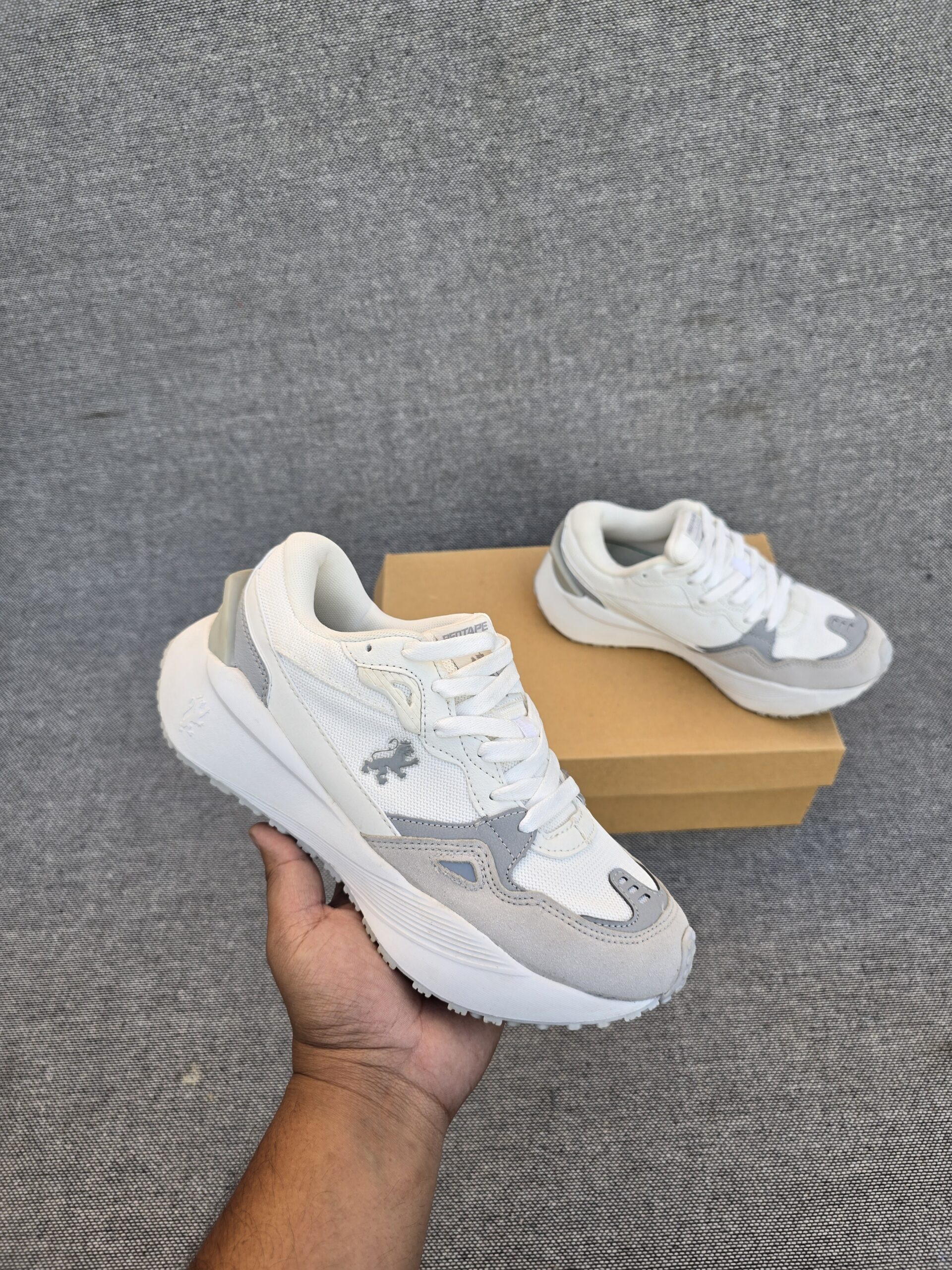 Crafted with a breathable textile and synthetic upper, these sneakers maintain airflow to keep your feet cool throughout long hours of wear. Whether you’re walking, traveling, working, or enjoying casual outings, the design ensures minimal heat build-up and maximum comfort. The clean white-and-grey color theme adds versatility, making the shoes easy to pair with jeans, chinos, casual trousers, or athleisure outfits.
